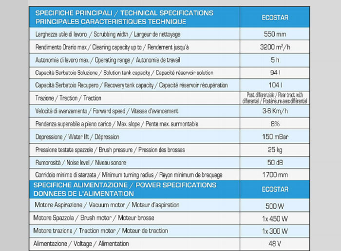 La prima macchina lavapavimenti a 48V. Grande autonomia di durata superiore alle 5 ore, 110 litri di capacità del serbatoio di produzione e del serbatoio di recupero. La prima lavasciuga pavimenti studiata e prodotta con le dimensioni di una lavasciuga uomo a terra ma con la comodità di una uomoa bordo